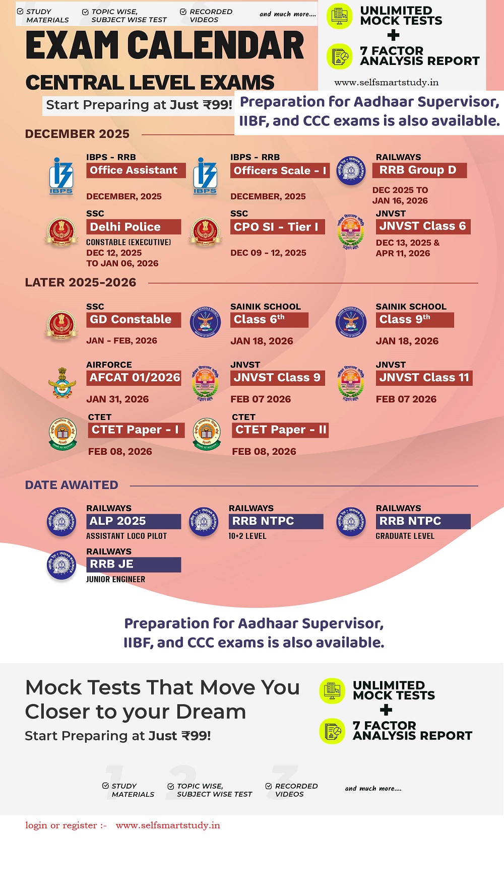Exam PatternTotal Marks : 200 | Total Time : 120 Min | -ve marking : 0.25 (For each wrong answer) Subject Qus. Marks General Awareness 40 40 General Intelligence & Reasoning ability 40 40 Arithmetical & Numerical Ability 40 40 Test of Hindi Language & comprehension 40 40 Test of English Language & Comprehension 40 […]